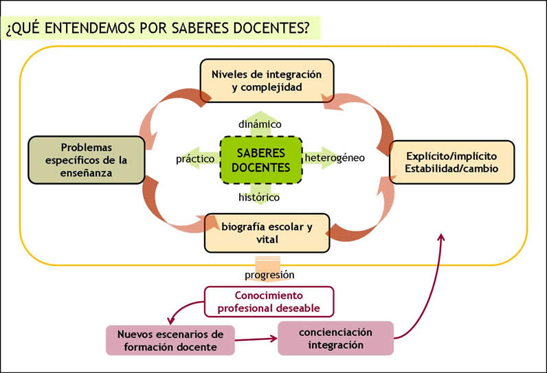 Ahora bien, esta imagen de inestabilidad que provee el carácter múltiple y heterogéneo del saber docente no significa que éste sea fácilmente modificable. Por el contrario, este conjunto ecléctico, polimorfo y plural, así como las relaciones entre sus elementos, las implicancias en la enseñanza y, principalmente, los componentes que definen su sustrato implícito, son sumamente estables y resistentes al cambio (Vázquez Bernal et al., 2006).